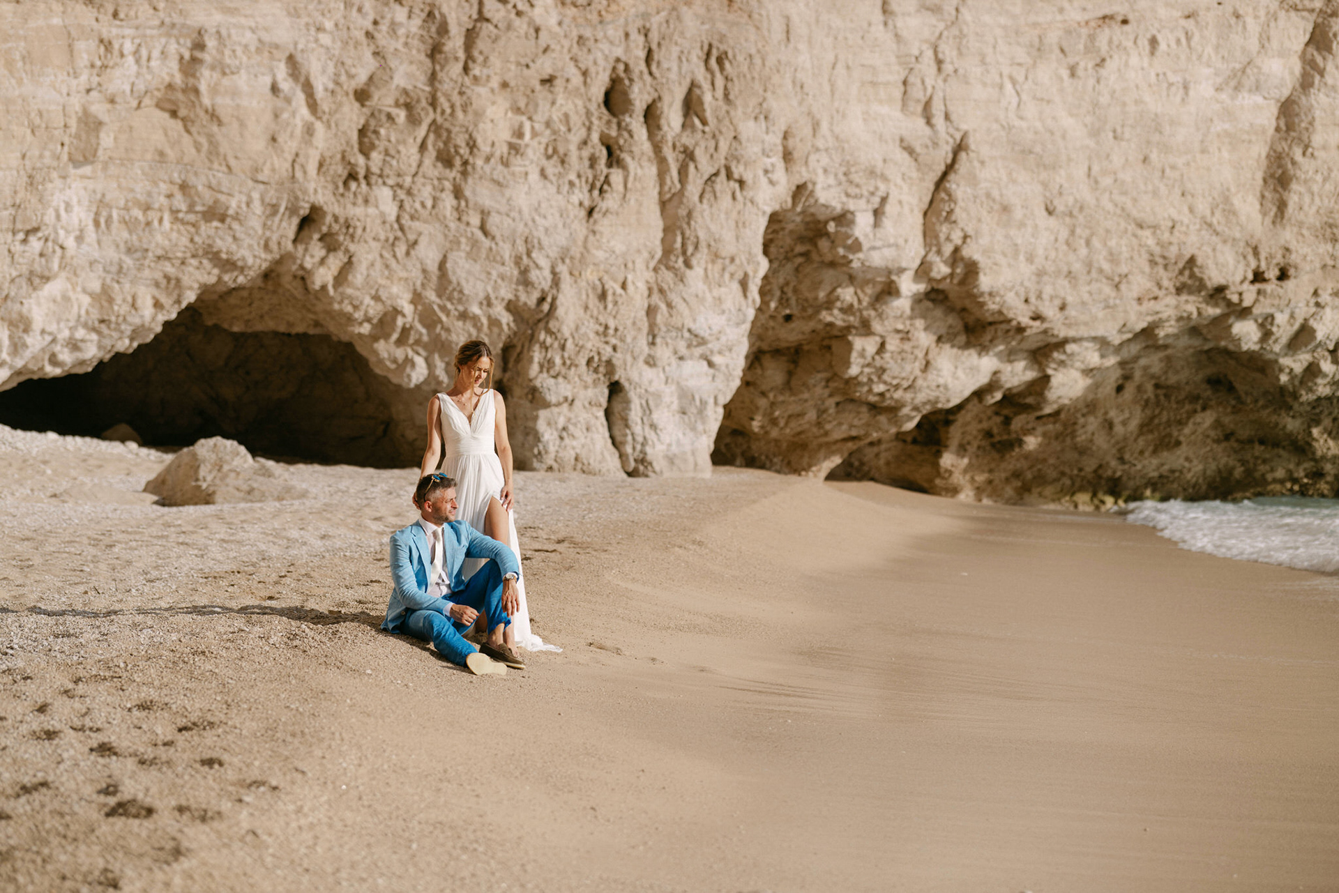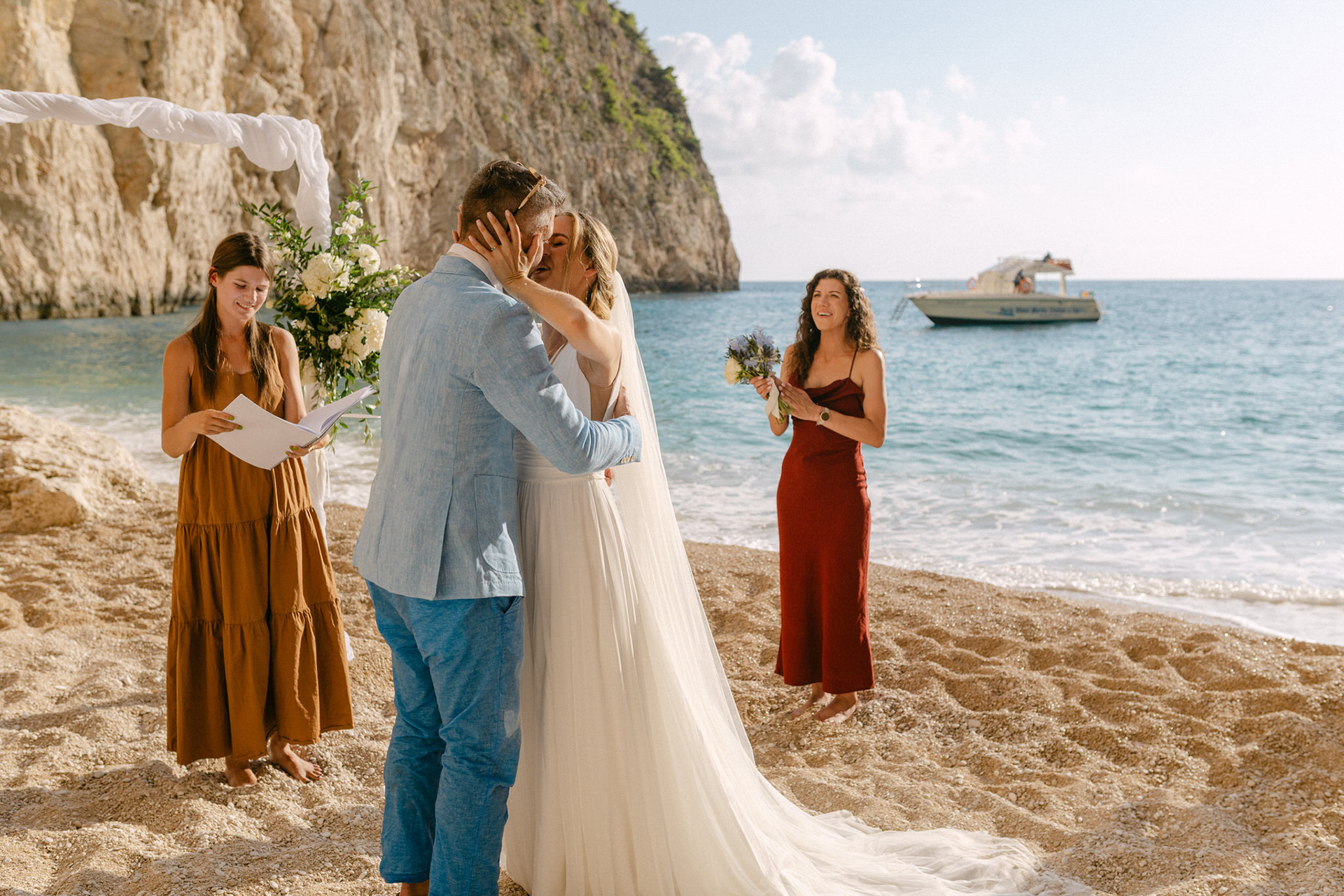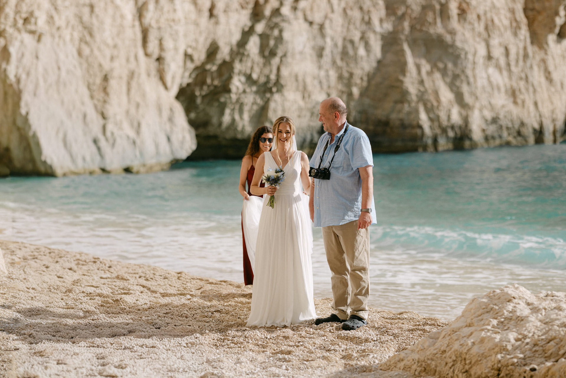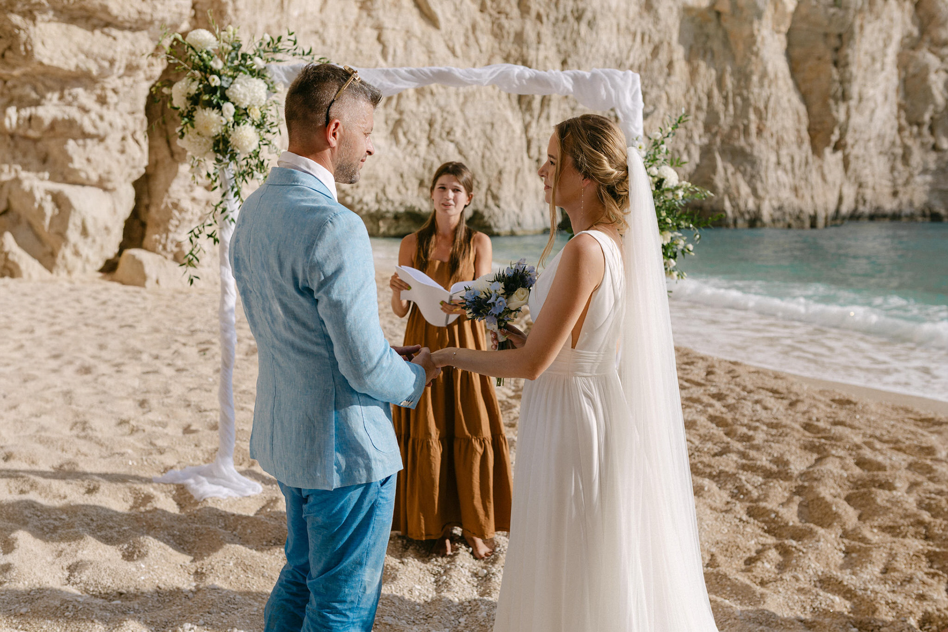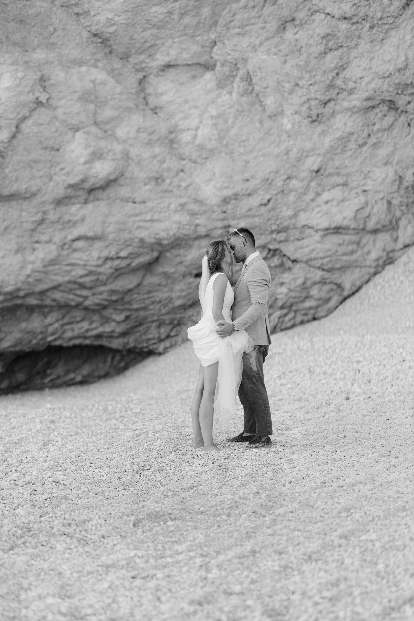 Experience the serene beauty of Kinga and Thomas’s beach wedding in Zakynthos. Held at the secluded White Sand Beach, this intimate ceremony captures the essence of a private island escape. View the full gallery by your Zakynthos wedding photographer for stunning seaside vows and coastal romance.