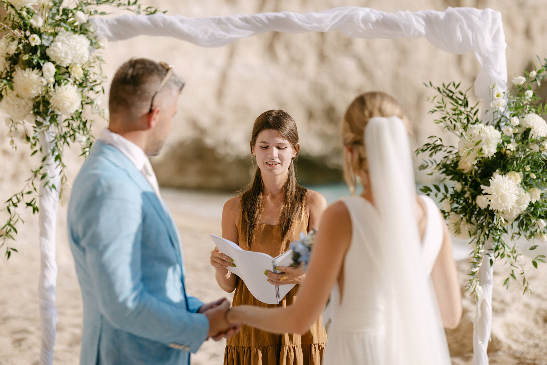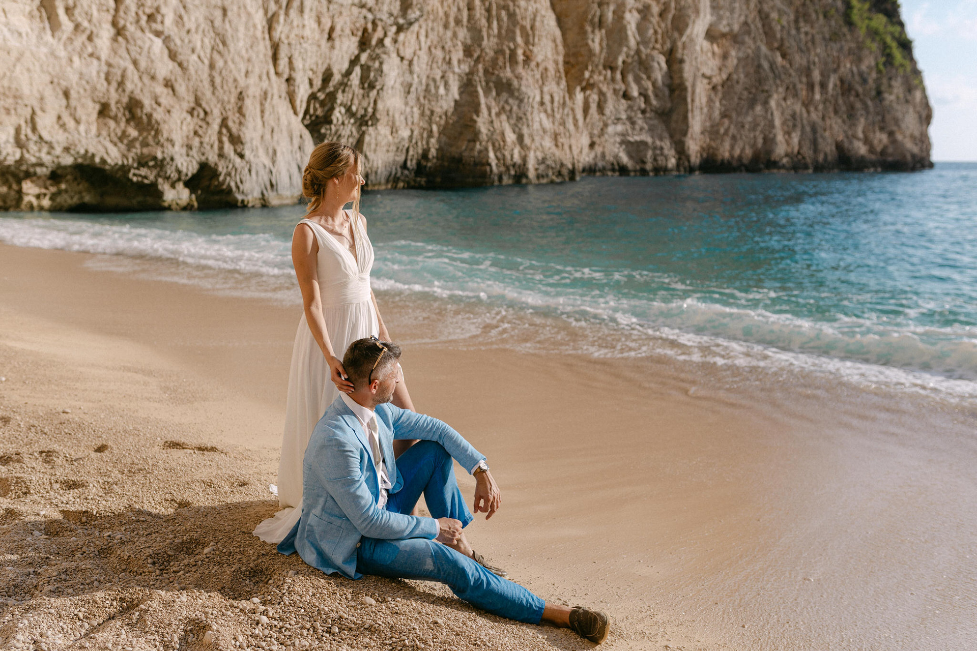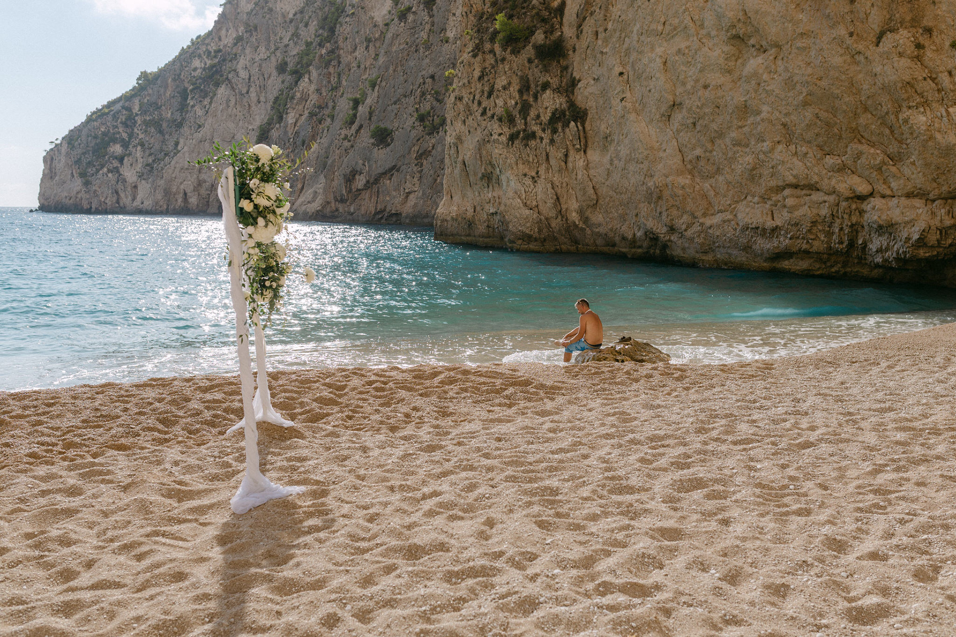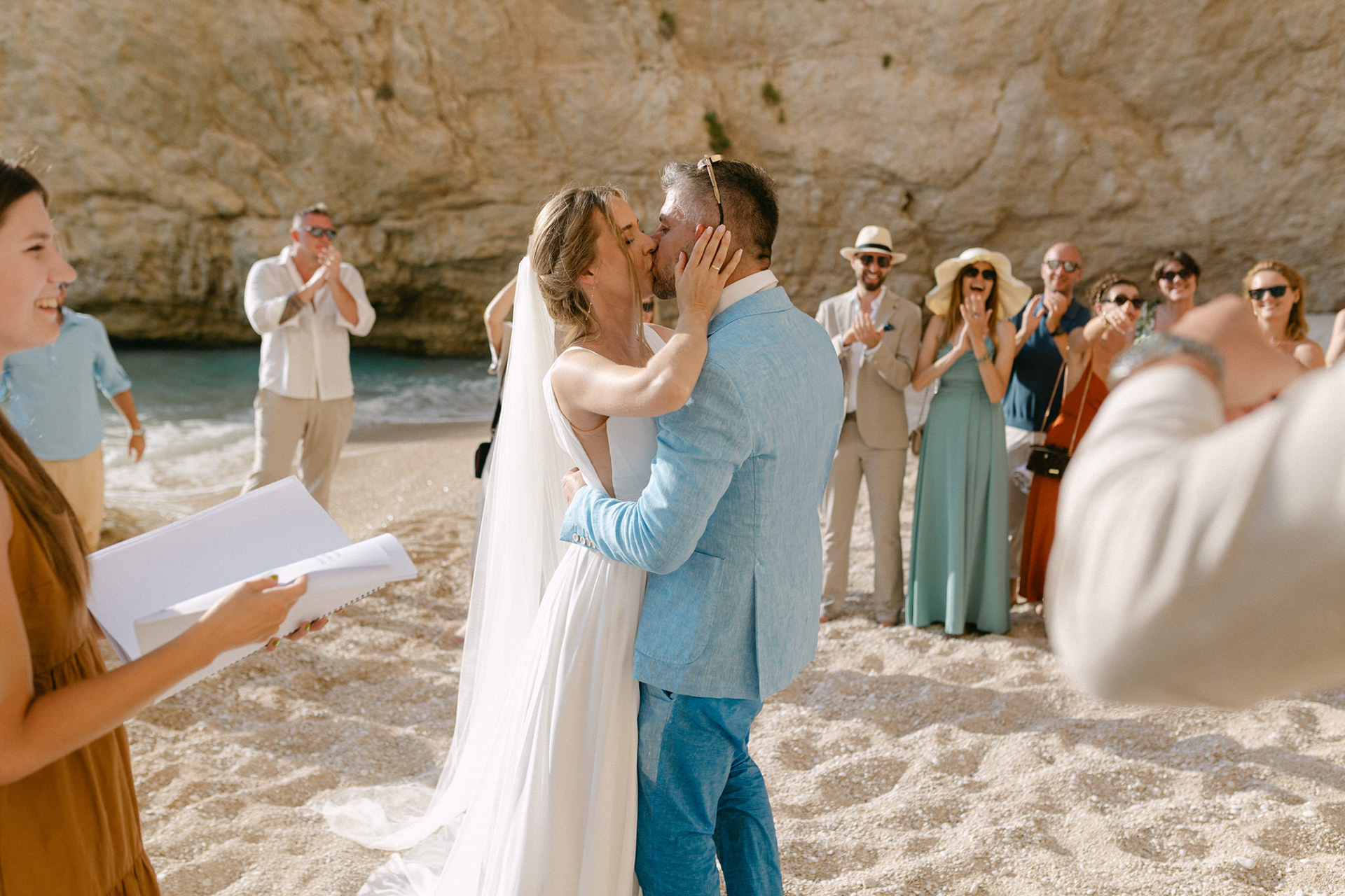Experience the serene beauty of Kinga and Thomas’s beach wedding in Zakynthos. Held at the secluded White Sand Beach, this intimate ceremony captures the essence of a private island escape. View the full gallery by your Zakynthos wedding photographer for stunning seaside vows and coastal romance.