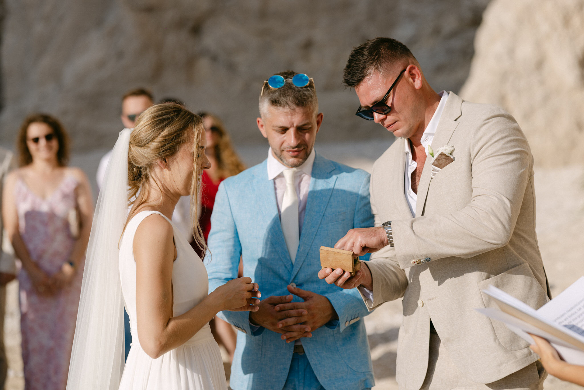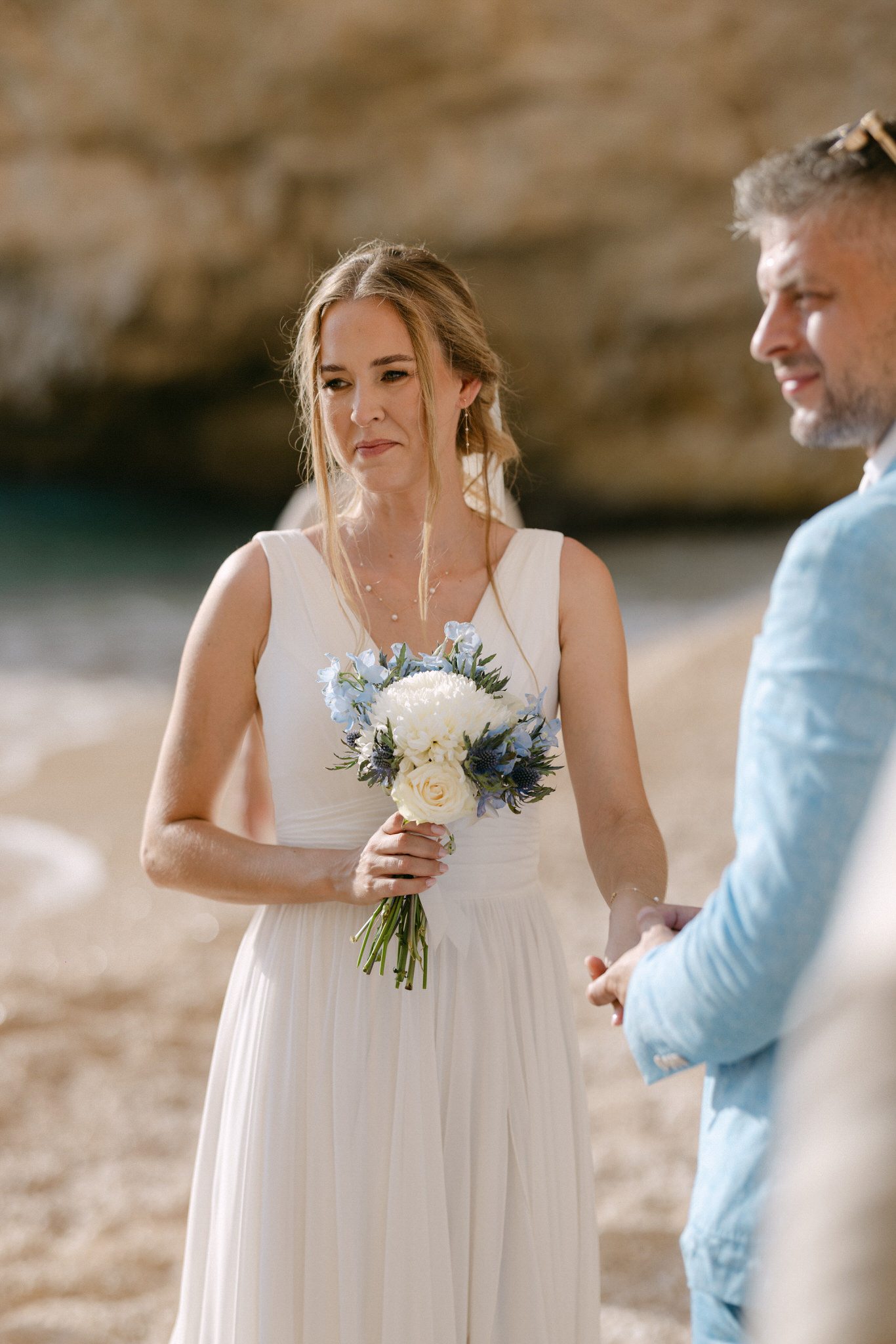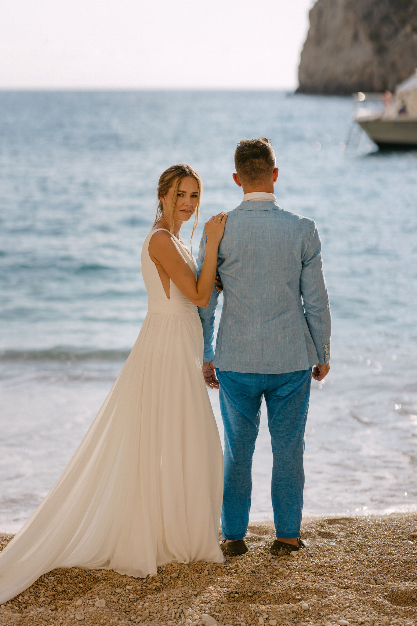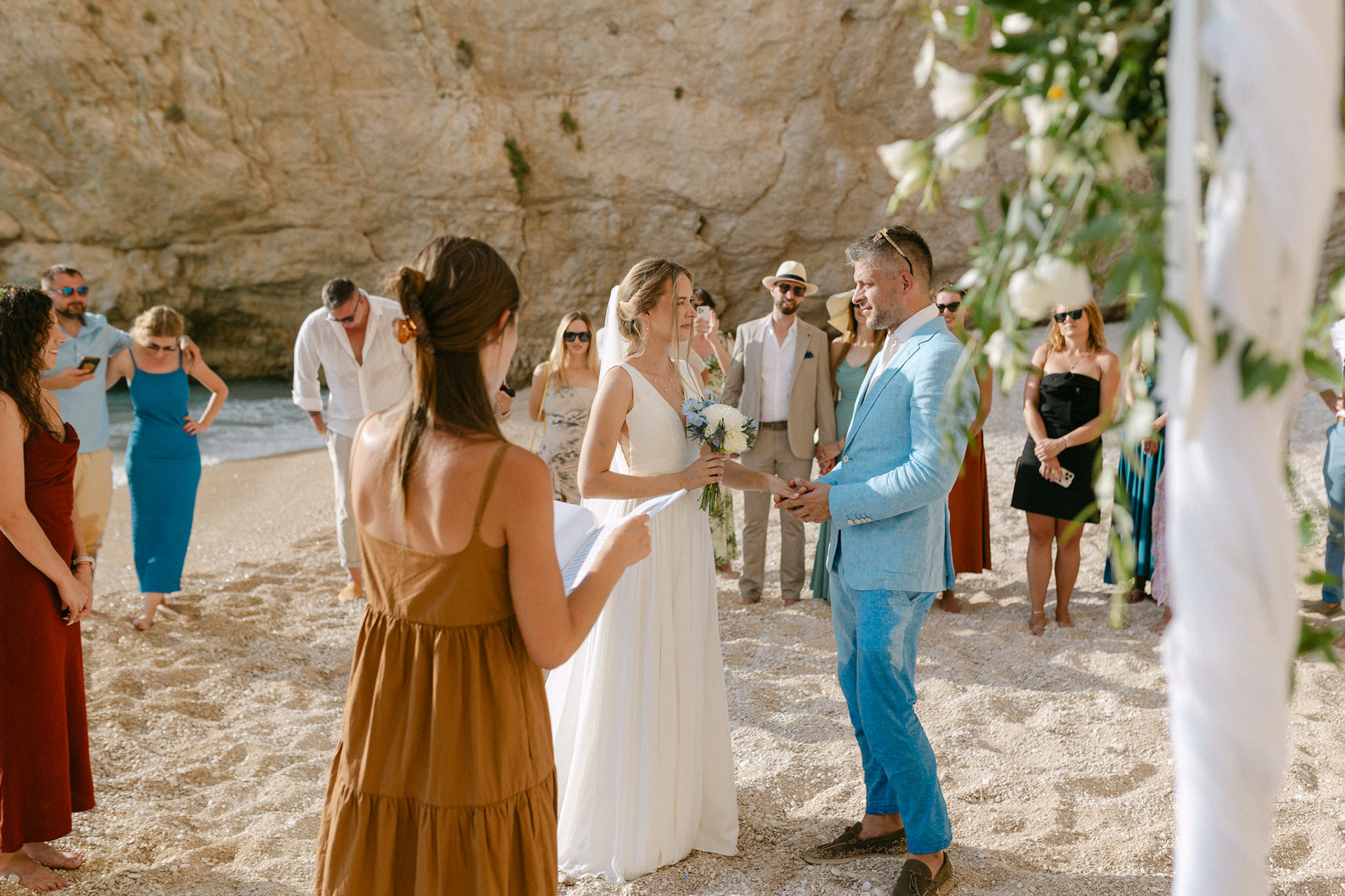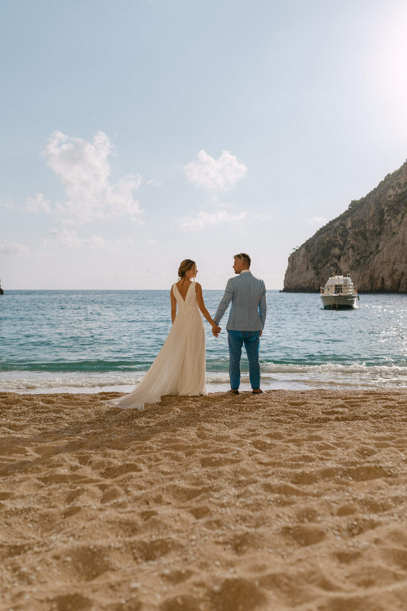 Experience the serene beauty of Kinga and Thomas’s beach wedding in Zakynthos. Held at the secluded White Sand Beach, this intimate ceremony captures the essence of a private island escape. View the full gallery by your Zakynthos wedding photographer for stunning seaside vows and coastal romance.